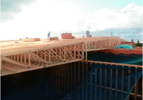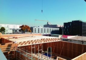 建て方工事を中心に、大規模木造の建築工事全般の計画から施工、品質の管理までをサポートいたします。大スパンが可能なコネックトラスの施工、木造耐火建築物における耐火被覆工事等、豊富な実績に基づくノウハウを活かして、安全を最優先した施工を行います。