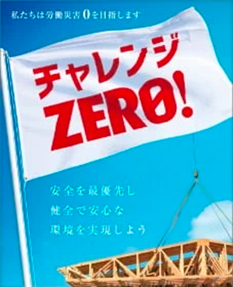 - 労働災害0件を目指して、『チャレンジZERO』を合言葉として定着させております。