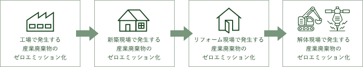 建物の生産から解体までのライフサイクルにおいて排出される産業廃棄物のゼロエミッション化を推進しています。