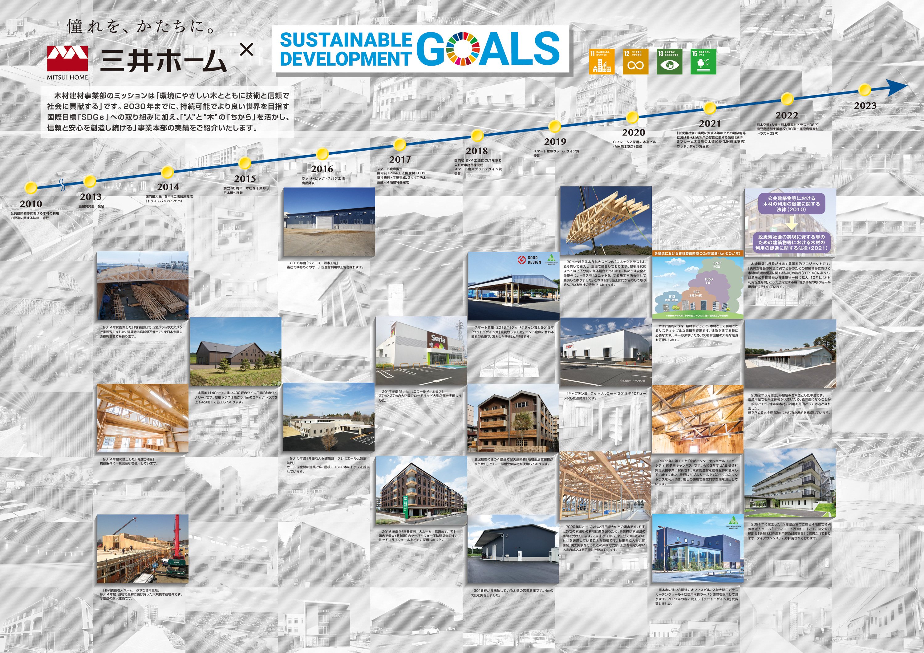 日本政府は木材自給率50%を目標に掲げ、国内の林業の再生を図っています。当社でも国産材活用プロジェクトを立ち上げ、販売元〜当社〜供給先までの全ての事業者が一丸となって、国産材の活用促進が図れるよう、事業を展開していきます。
