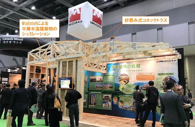 『wallstat』を用いた木造中高層建築物の耐震シュミレーションについてもご説明致しました。実際に当社で計画した木造の3階建てのビルを例に震度7の地震が来た場合にどのような損傷が現れるか、またその損傷を防ぐためにどのような補強をすれば良いかを映像でご説明致しました。