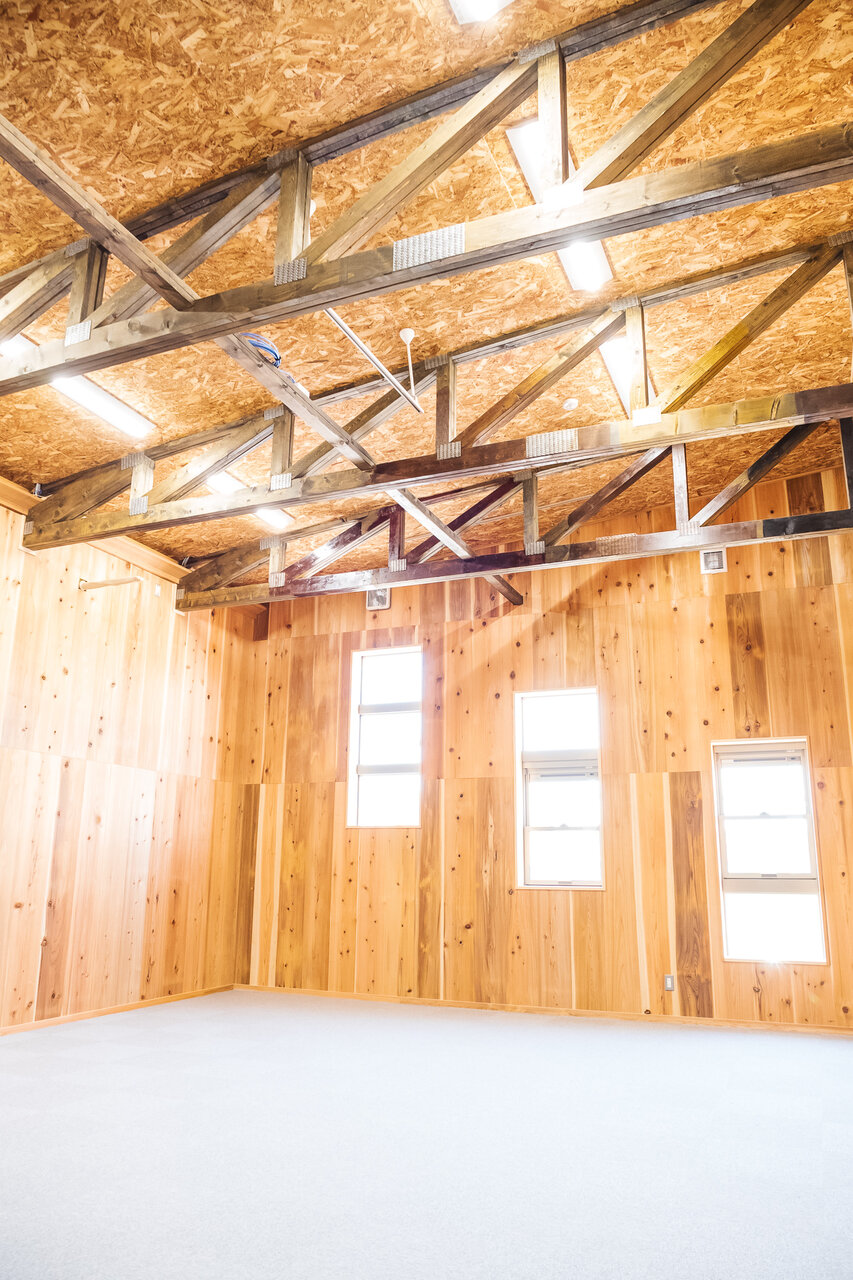 地下1階、地上2階(構造計算は3階建)、立面混構造