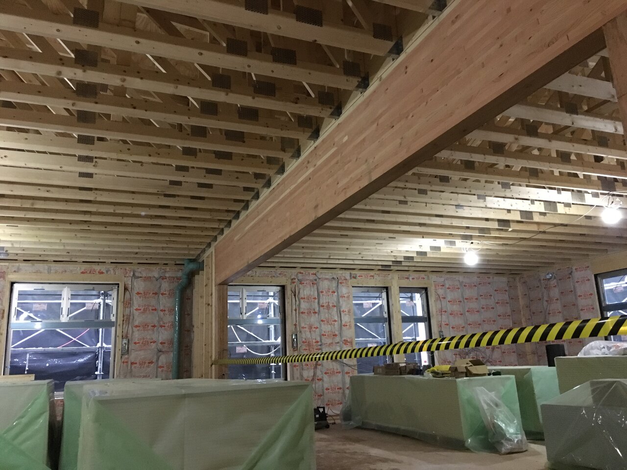 ◆床、屋根の構造材にはトラスを使用し大空間を実現(2支点間の最大スパンは9.1m) -