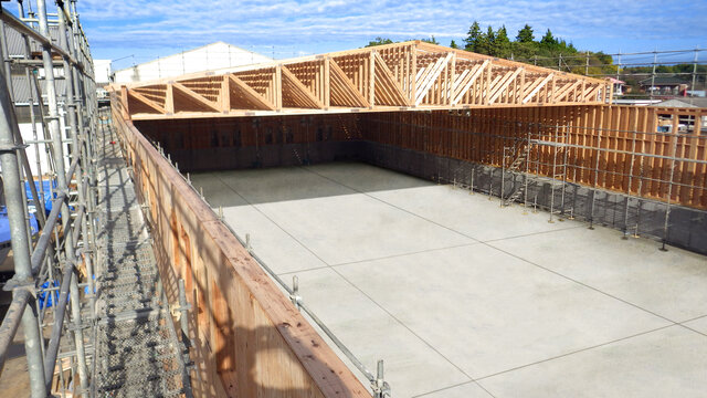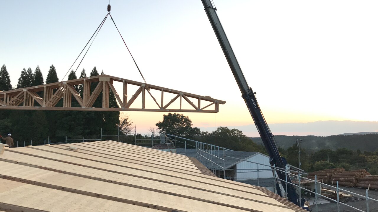 庇3m トラススパン15m 鹿児島県産材を壁・トラスに使用
