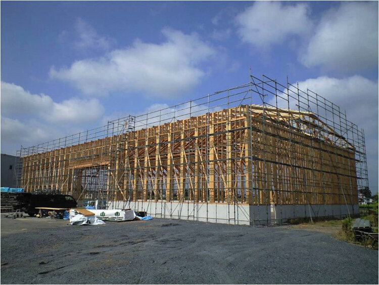 延べ面積:933.10m²(282.26坪) 構造:軸組工法・平屋 屋根:カラー鉄板(ウレタン裏打ち)