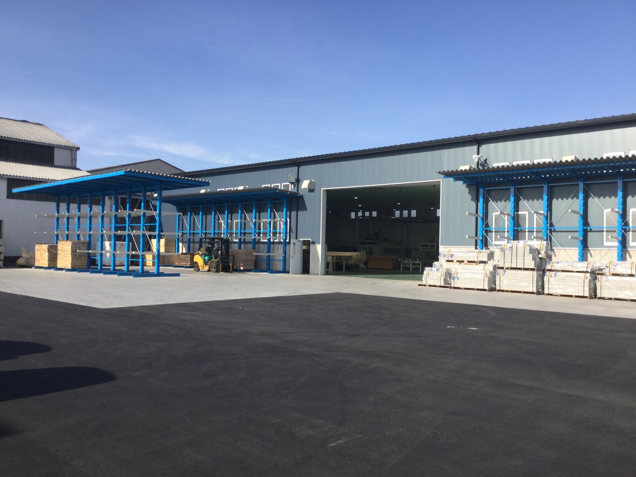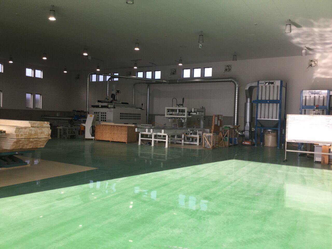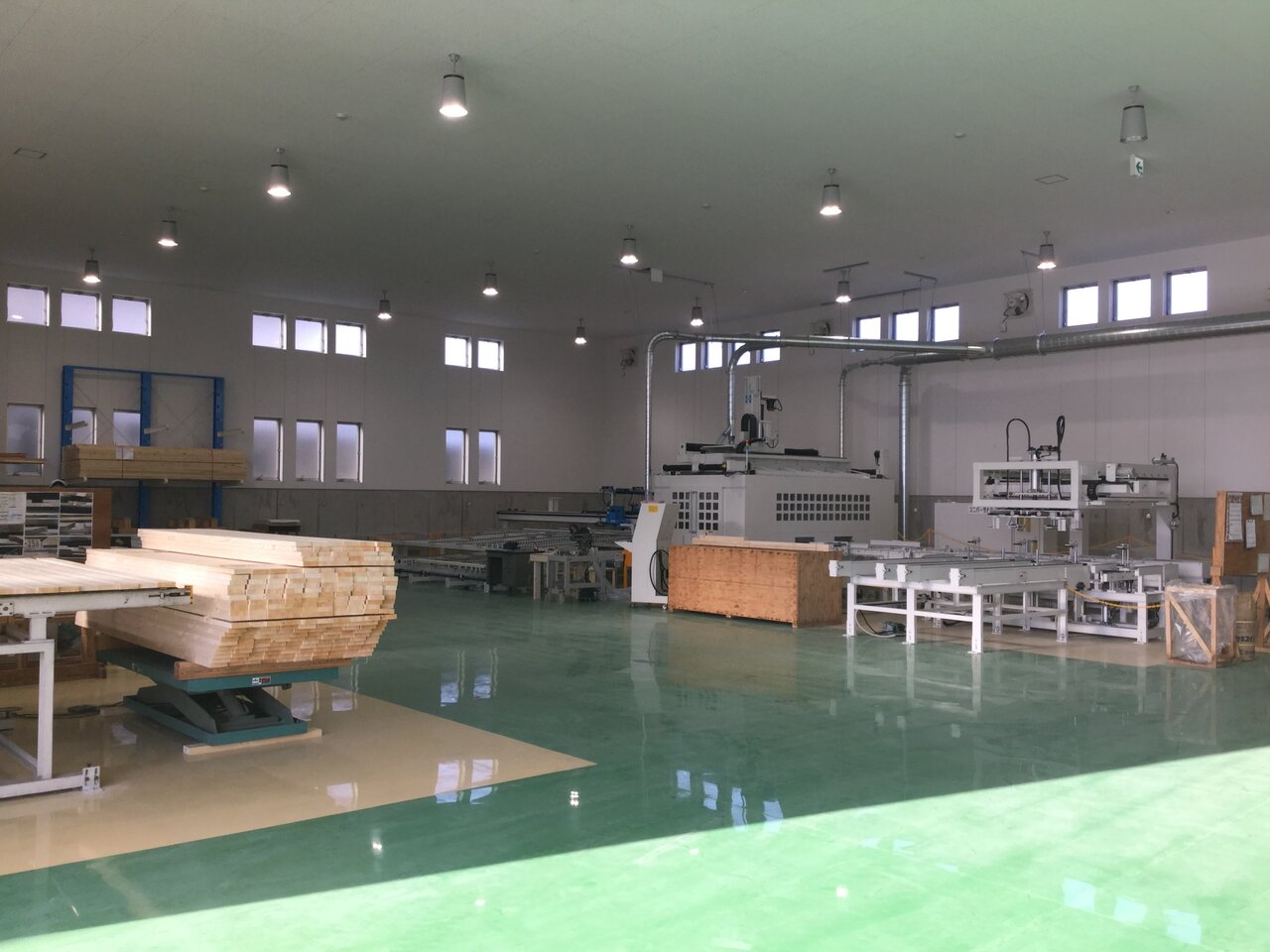 2×6材の木質トラス構造による約21m×43.5mの大空間実現の木造工場。この工場建設は、林野庁の森林整備の補助事業として、『森林整備加速化・林業再生交付金』を受けている。100%国産材での2×4工法による工場建設は全国初の試みで、土台はヒノキ、枠組材は2×4・2×6の断面のスギ(八溝杉)、合板はカラマツ、まぐさと一部のまぐさ受けにはカラマツLVLを使用している。6mの天井高さを確保するため、国産材として調達可能な最大長さとなる4mのたて枠を採用し、基礎高を2mとした。
