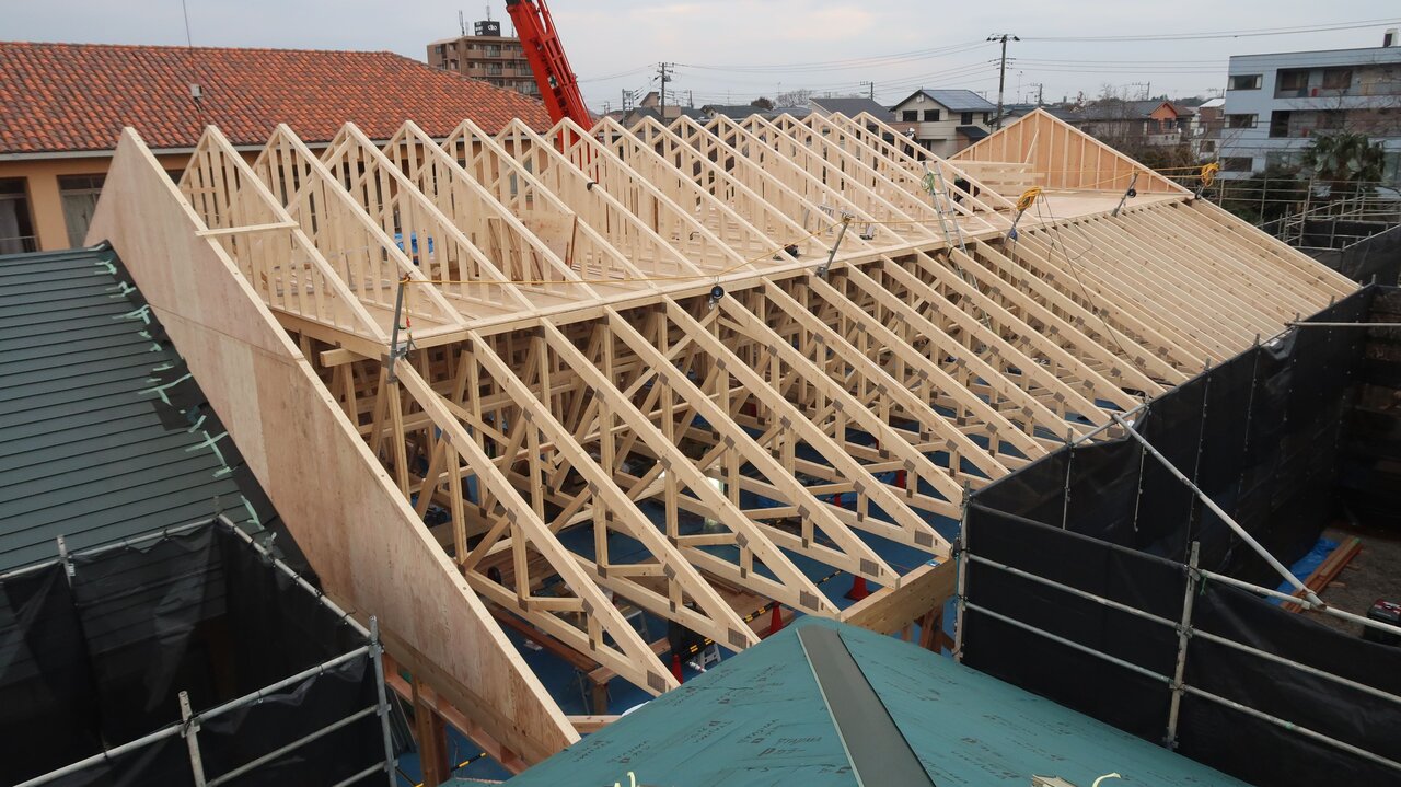 ・5寸勾配スパン16.9m部分に上下2段、下段2分割トラス
