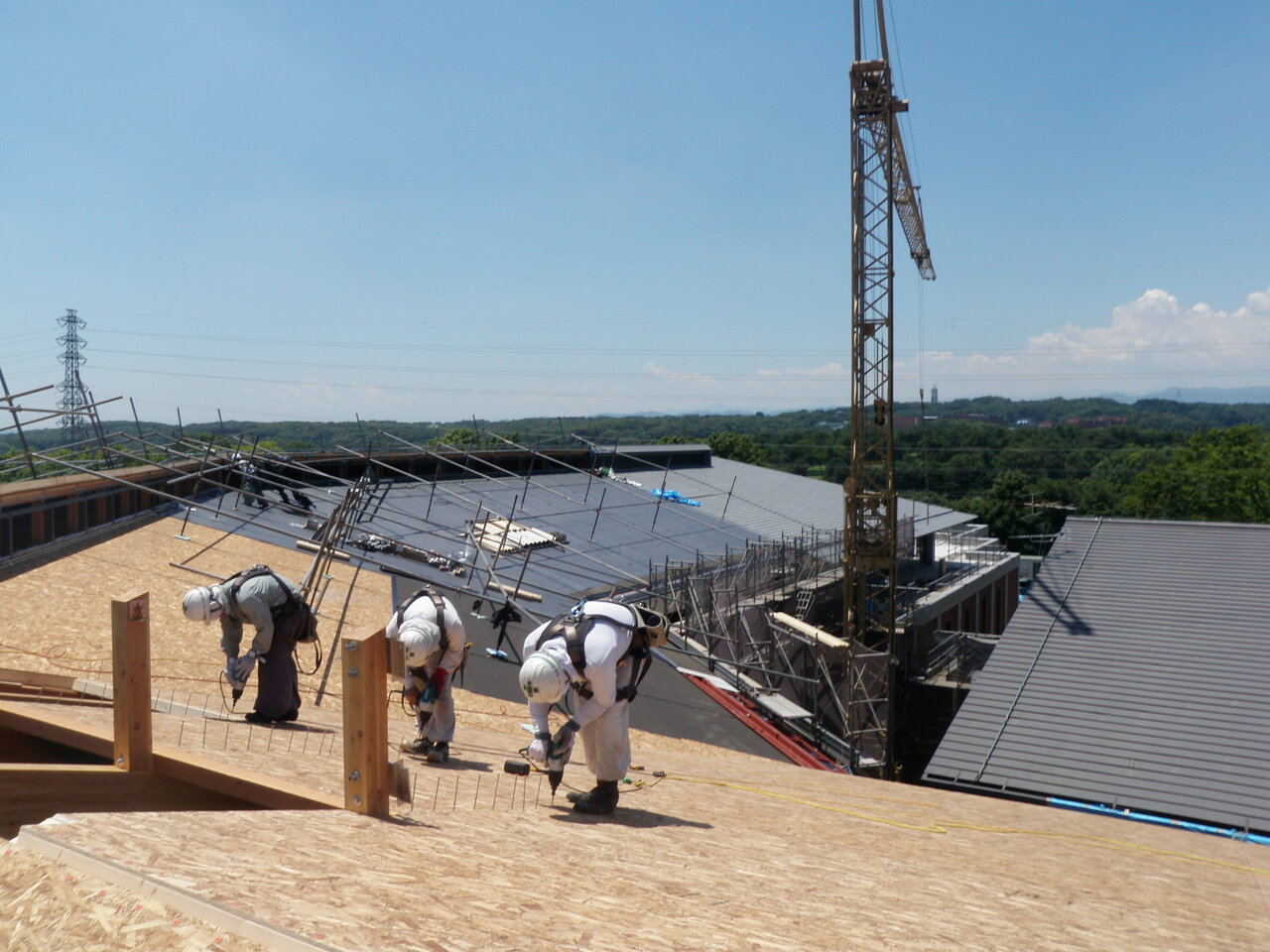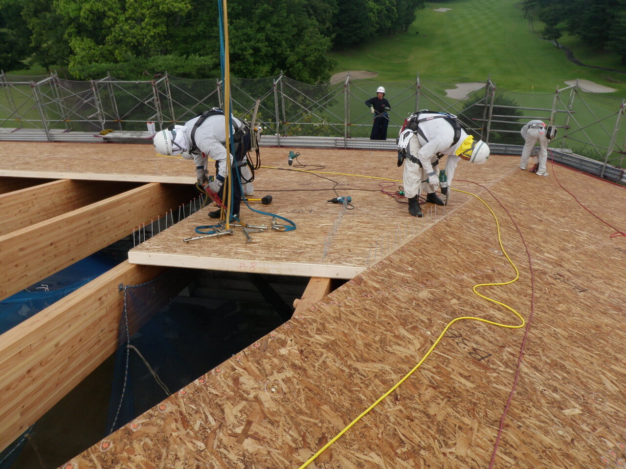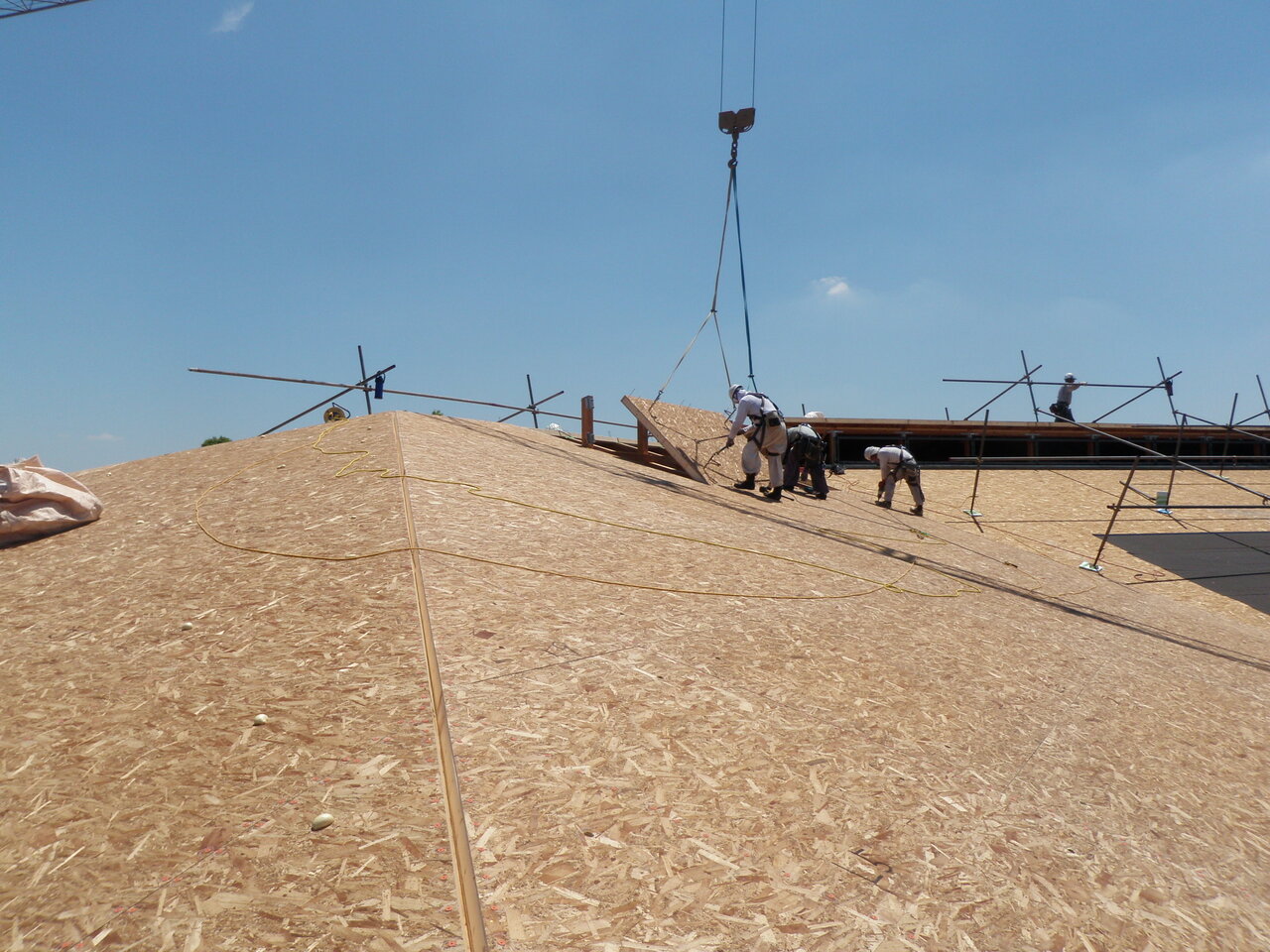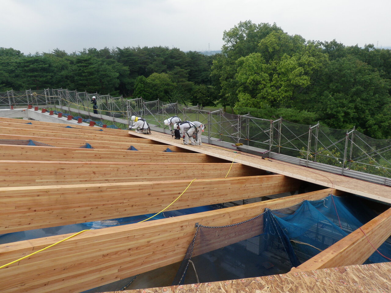 屋根面:大断面集成材+鉄骨+DSP 混構造