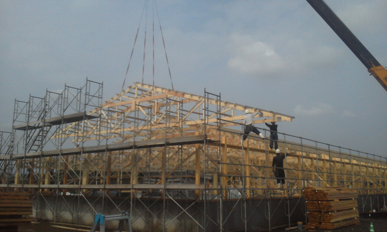 コネックトラス + 柱(在来材) 交配舎・妊娠舎・分娩舎・子豚舎・馴致舎・堆肥舎・倉庫の一貫農場