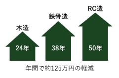 6 減価償却が短い キャッシュフローに有利 法定耐用年数=減価償却年数の為、木造建築は短期で原価償却でき、キャッシュフローが有利になります。