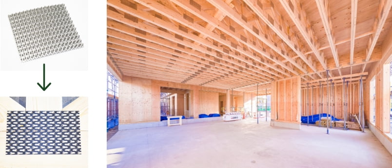 当社の木質トラスは、ツーバイフォー工法、木造軸組工法、RC造、S造とどんな構造の建物にも対応できます。 ・国産材への対応